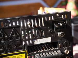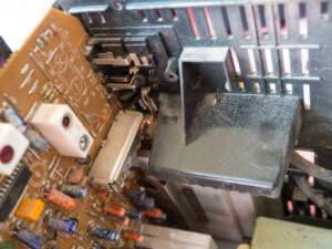 4. Якби ж то моя плата стояла на передній панелі, то можна було б збирати магнітолу і користуватися. Але тут виникло питання: а як я буду керувати музикою за допомогою пульту, якщо плата знаходиться на задній кришці? Відповідь прийшла негайно: випаяти приймаючий ІЧ-фотодіод і перенести його на лицеву частину. Там його можна було б розташувати за склом індикатору (найшвидше, проте, не найліпше рішення), можна було б поставити його у віконце старого фотодіоду, можна було б навіть підпаяти до рідного фотодіоду і перевірити, що б з того вийшло. Але у мене на передній панелі розташовано велику напівпрозору кнопку HI TONE, порожню всередині. Ось там я фотодіод і розташував, використавши для фіксації роз'єм.